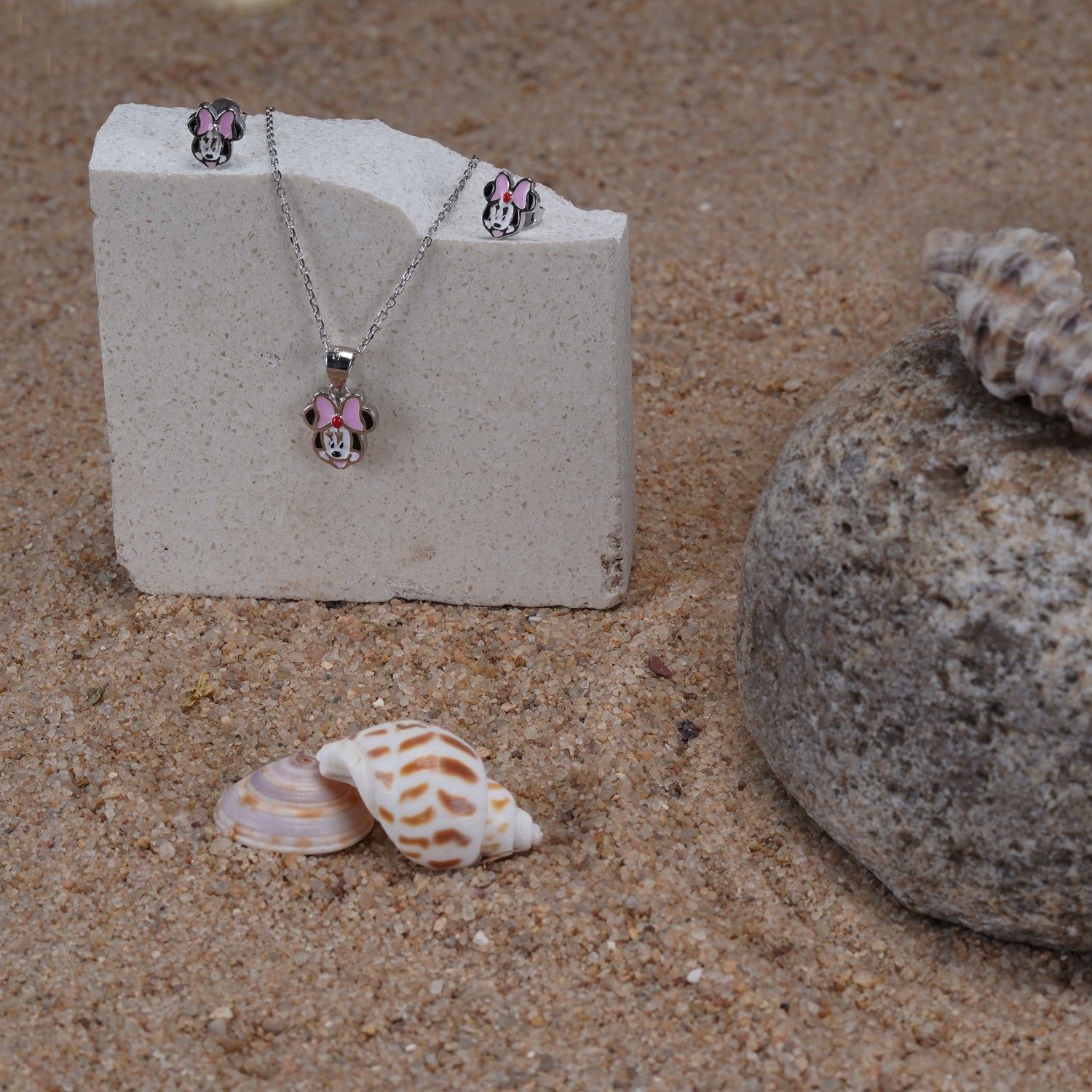 Celebrate the joy of childhood with this adorable pendant set, featuring the iconic charm of Minnie Mouse—crafted in pure 925 sterling silver. Designed for those who carry a playful spirit with a love for fine details, this set blends nostalgia with timeless style. Perfect as a gift or a personal keepsake, it's a magical addition to any jewelry collection